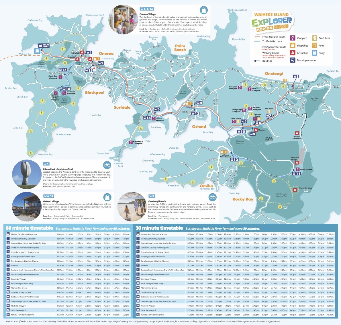 The buses will get you to most key points on the island, like Oneroa, Ostend, and Onetangi. They even go right past some of the most famous vineyards, such as Wild Estate and Tantalus Estate.
