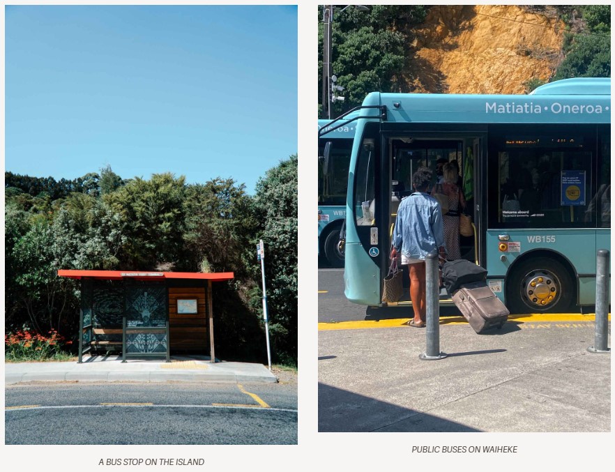 There are many options to explore Waiheke Island without a car. Public buses meet the ferry from Auckland and connect Matiatia Ferry Terminal with Oneroa Village, Onetangi Beach, and Palm Beach.