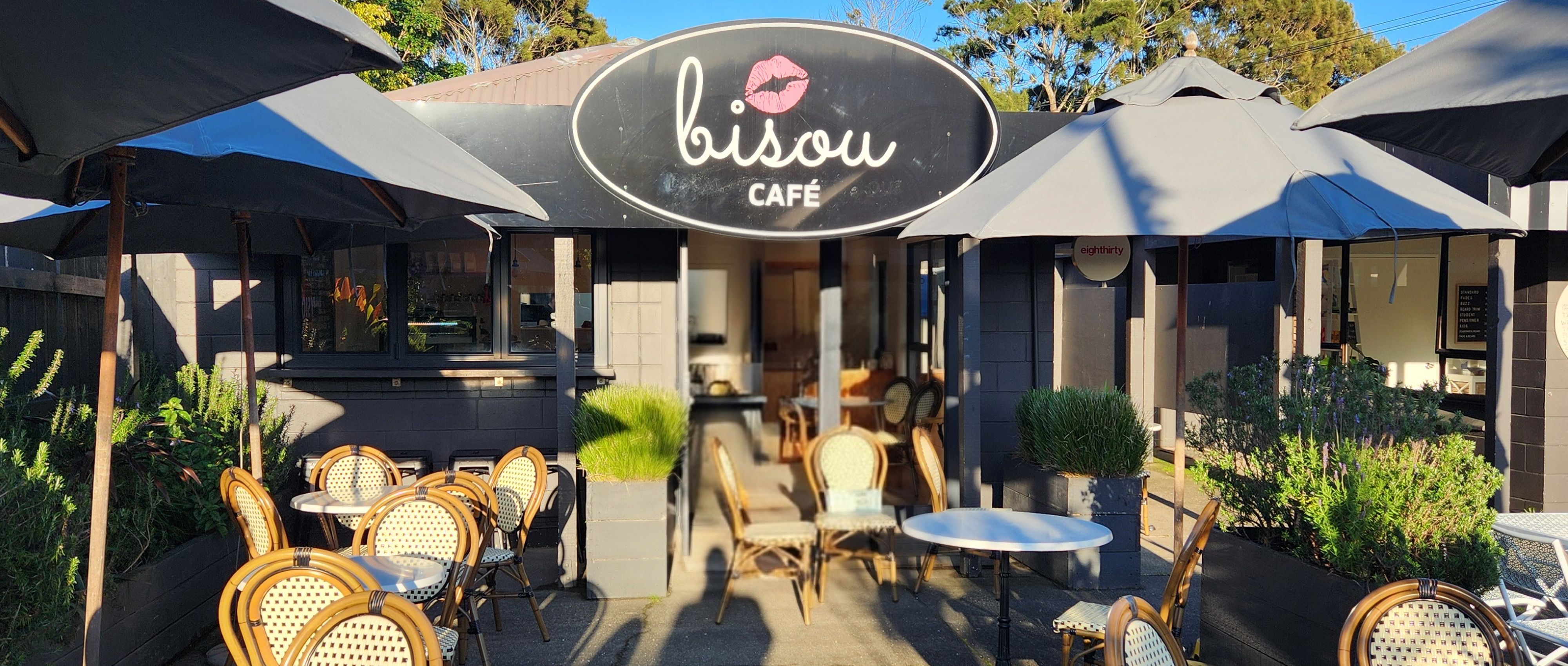 Tucked away at 4 Miami Avenue in Surfdale, Bisou is a cosy café on Waiheke Island offering European-inspired dishes with a local touch. Enjoy fresh flavours, quality coffee, and warm service in a relaxed atmosphere. Bisou has become a favourite spot for both locals and visitors seeking a relaxed yet refined café experience.